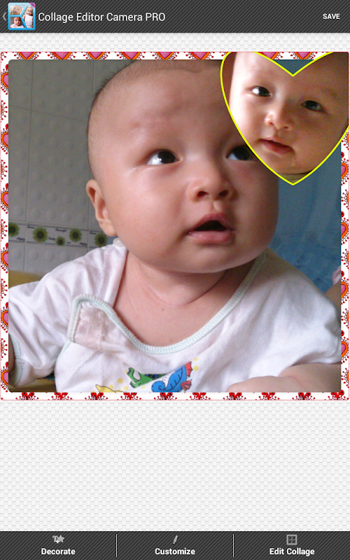 ♥♥ Fully customizable templates: with each template, you can modify to create the most beautiful collage that is suitable for your photos. With the shape in the collage template, you can modify the points to change it into whatever shape you like. With the star, heart and circle, you can move, rotate, resize them in the way you like with your two fingers.