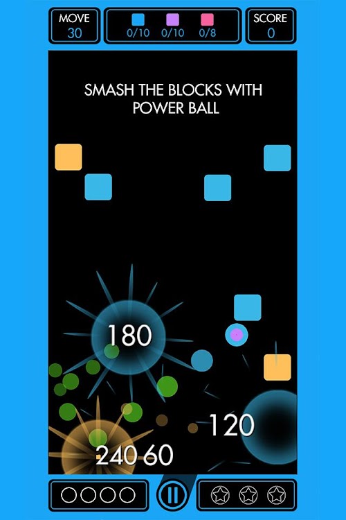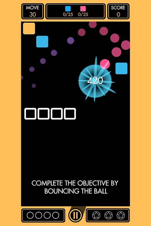 Your mission is to eliminate a set of colored blocks in the playfield within a number of moves by firing a color-changing ball into them, bouncing off the walls and other blocks to create combos and power balls.