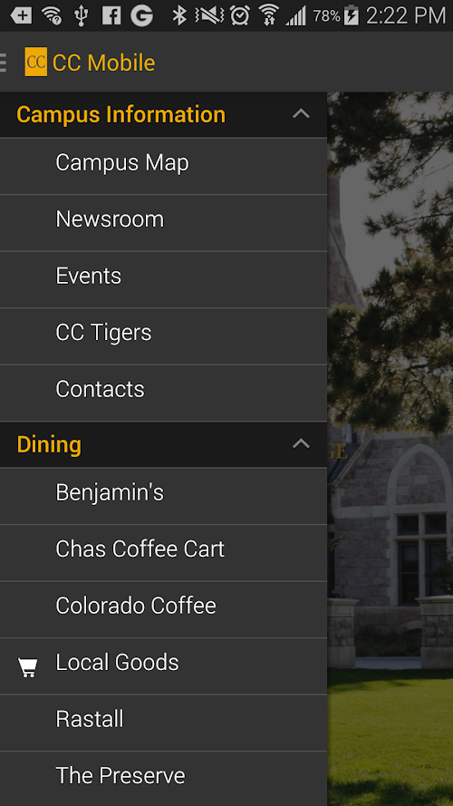 The Colorado College mobile app helps you stay connected to the CC community like never before. Through the mobile app, you’ll have access to great features that make your campus experience more effective, efficient, and fun!