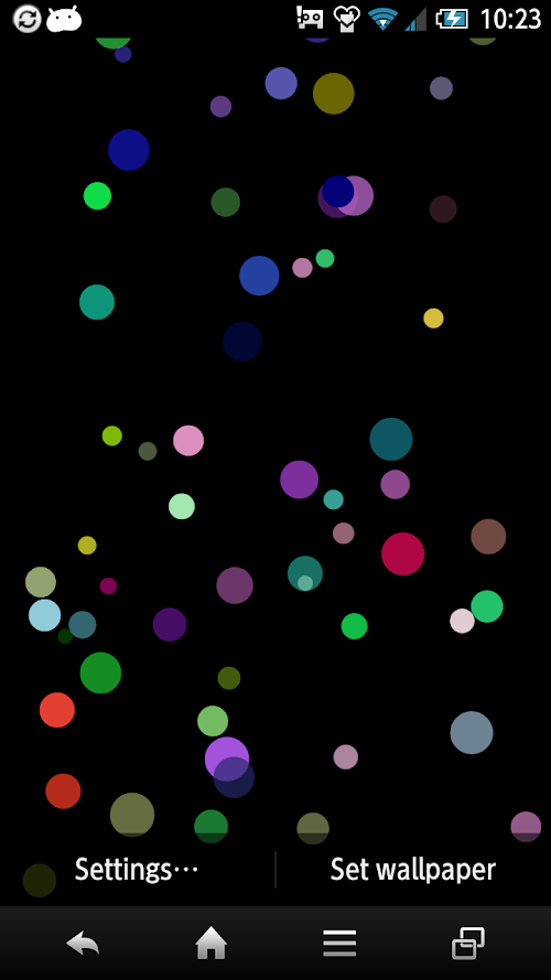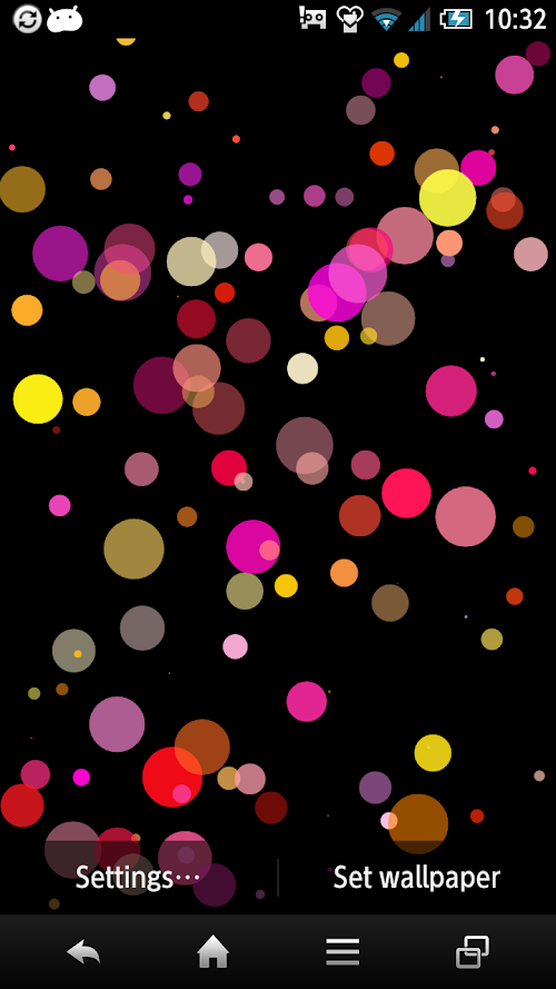 This is a live wallpaper of colorful balls that bounce around the screen.