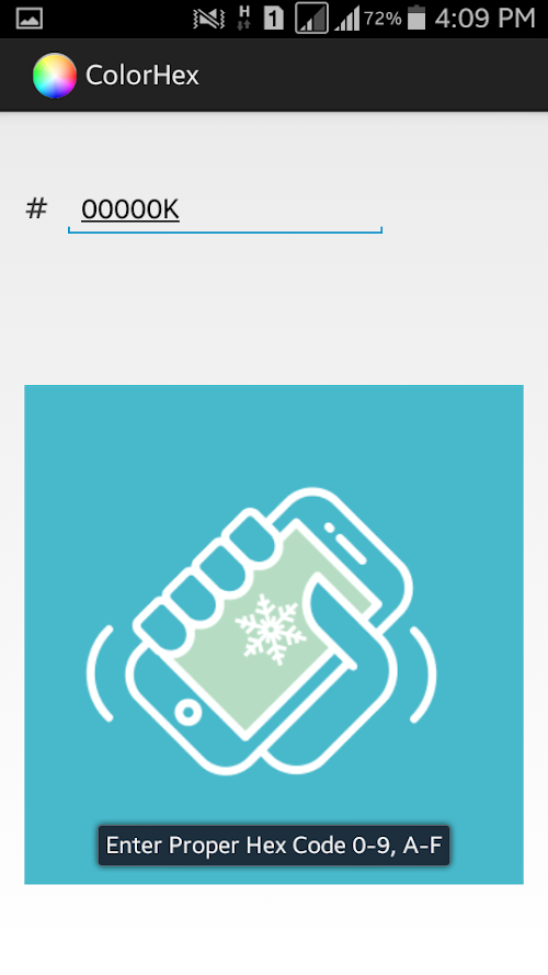 This is a simple App that can be utilized by a Programmer, or Mostly by Web Developer to check the Color represent by the entered "Hex Color Code". After entering the "Hex Color Code" just SHAKE the device to see output.