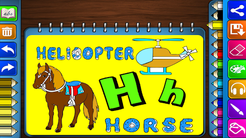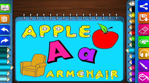 In this game which is prepared free, there are 26 letter for you to colour illustrated with various of pictures. For example, the letter “P” is prepared with its small and big types on the same page with “Princess” and “Police” pictures. You will both recognize letters and learn two words on the page which start with that letter. And you will know the objects by colouring the samples which we prepared for you. You can listen the letters and names of the objects on that page by clicking on the sound icon on the toolbar.