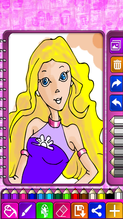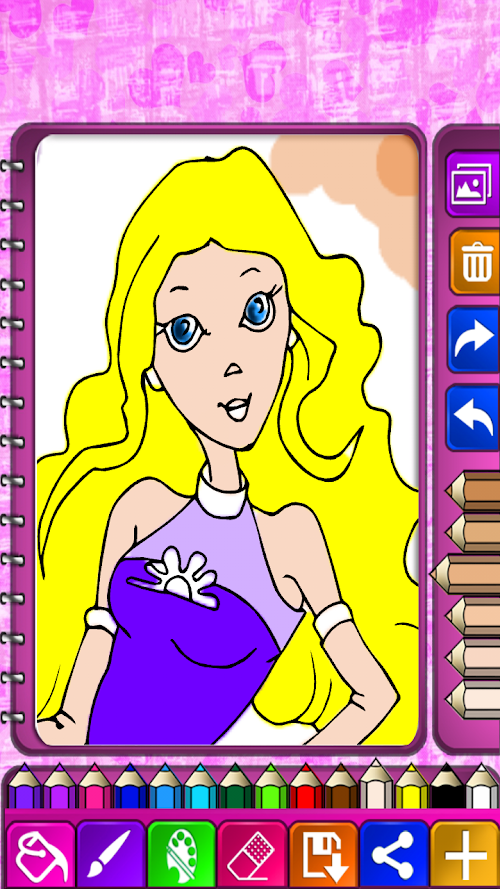 You can do detailed painting with rich toolbar menu as long as you like in this game. You can reach 3D and realistic resultswithout missing out any details by using the qualities of zooming in the painting and fixing brush size or its clarity options . Thanks to these qualities if you want, you can make up to the princesses by using zooming in section. When you do mistakes or don’t like the result, you can refit by using undo section. You can undo for 25 times at the most. You can load finished paintings to social web like Whatsapp, Facebook, Google Drive, Chat Onand share with people you love.