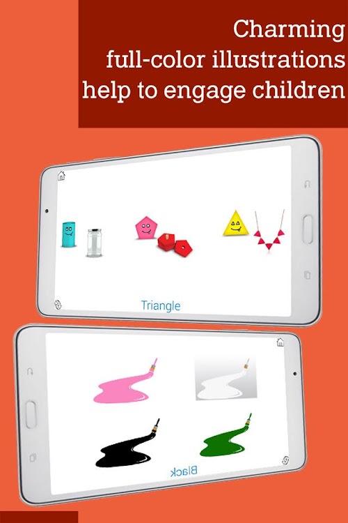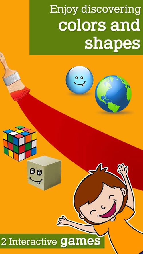 Colors and shapes for kids have 2 sub games that will help your child to test the learning.