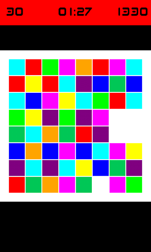 Starting with squares in the initial position, you can swipe to collapse adiacent squares of the same color. After each turn, new colored squares will appear on the board.