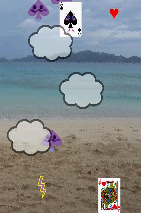 Drag your Jack of Hearts left or right to avoid lightning bolts and shoot up hearts to pop the aliens trying to land. If you let the aliens land for too long without popping them, and a purple fog reaches the bottom of the screen, you lose and humanity is overtaken by aliens. This is the first level of larger game.