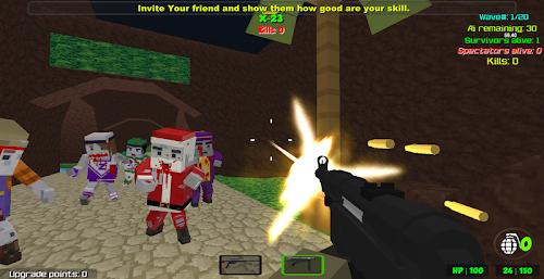 Action multiplayer Fps and enemy zombies Pixel quality style , You can fight with friends on vehicle or other peoples and also play as a team and win all wave zombies.