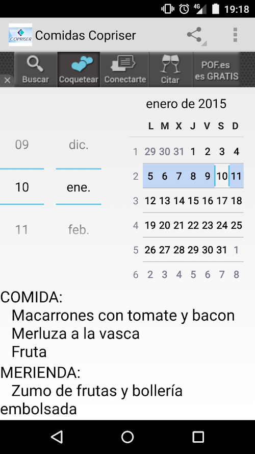 Aplicación destinada a conocer el menú de cada día de la residencia universitaria Benjamín Palencia de Albacete. Para usarla sólo hay que seleccionar el día que queremos saber y abajo nos saldrá el menú de ese día. También es válida para otras residencias pertenecientes a la empresa Copriser.