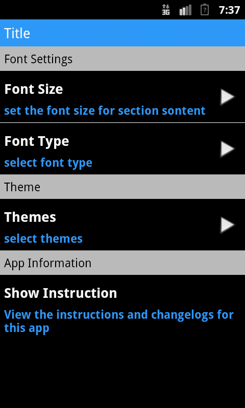 11.Share Section Title, Content or both through SMS, Email or any text related application.