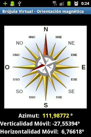 The compass reading that is accurate, but can be adjusted even more precisely positioning said mobile horizontally until the black background color turns red. A beep will sound indicating that the position is perfect and paragraphs " Verticality Mobile " and " Mobile Horizontalidad " , appear the words " LEVEL " red.