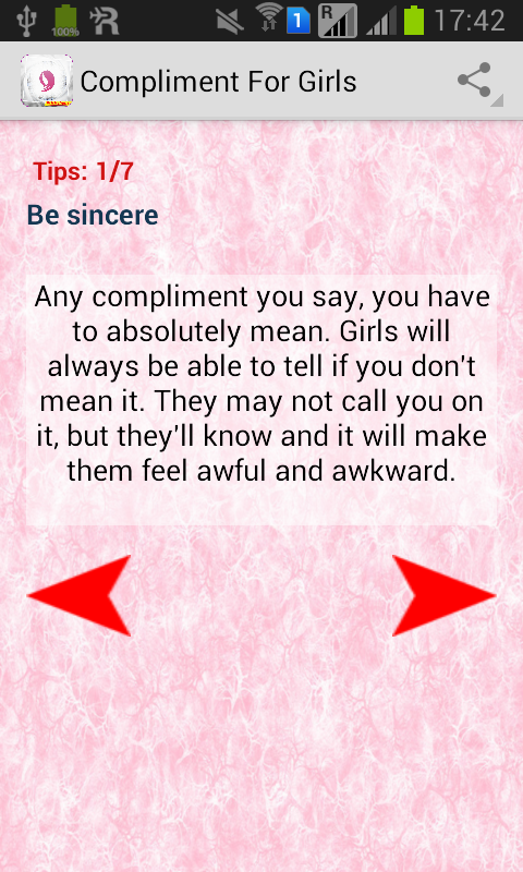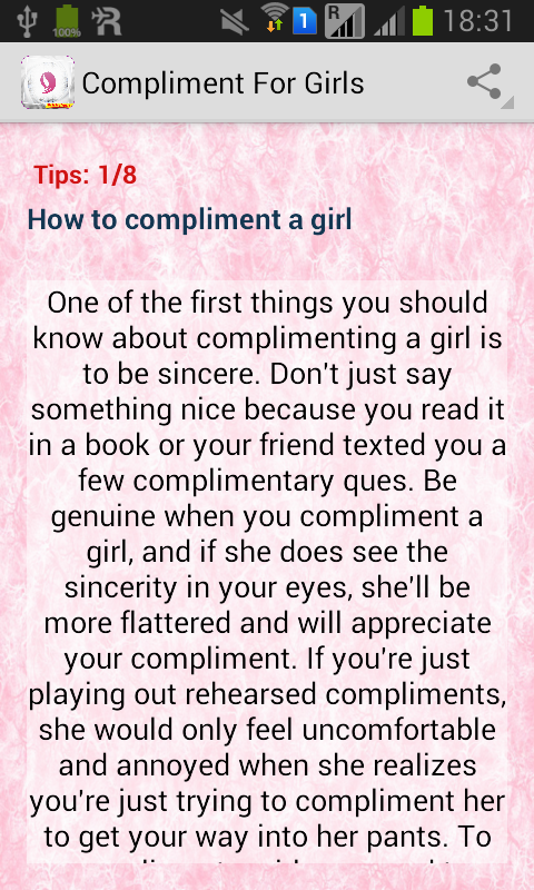 If you are looking to download other versions of Compliment For Girls Android App, We have 1 version in our database. Please select one of them below to download.