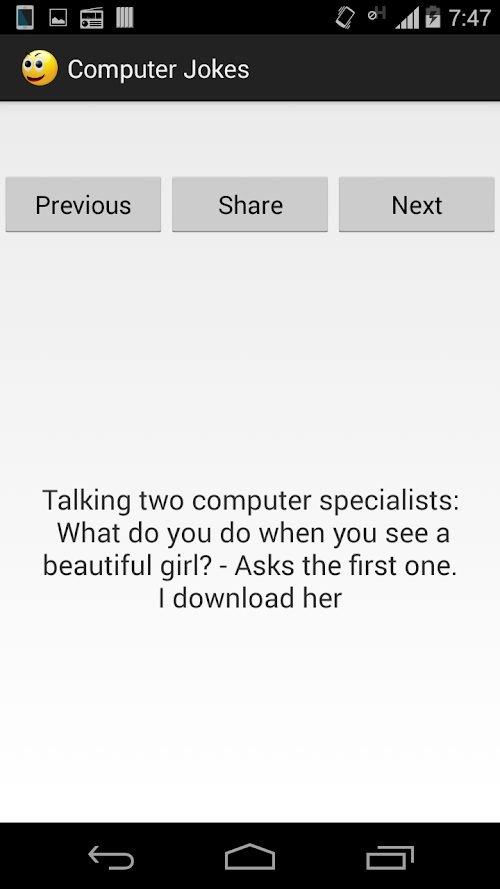If you are looking to download other versions of Computer Jokes Android App, We have 1 version in our database. Please select one of them below to download.
