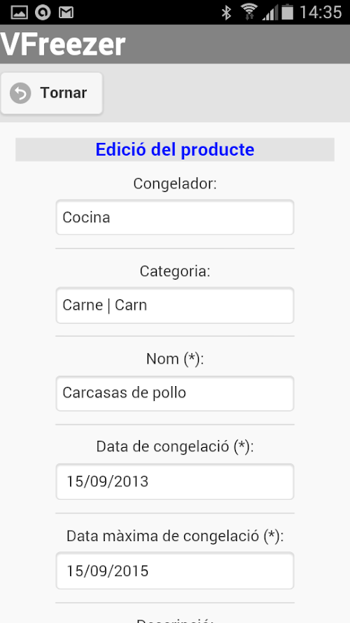 També ofereix la possibilitat d'anotar els productes que s'han de comprar a la llista de la compra.Catalan version VFreezer app that lets you create and manage several freezers and products containing.