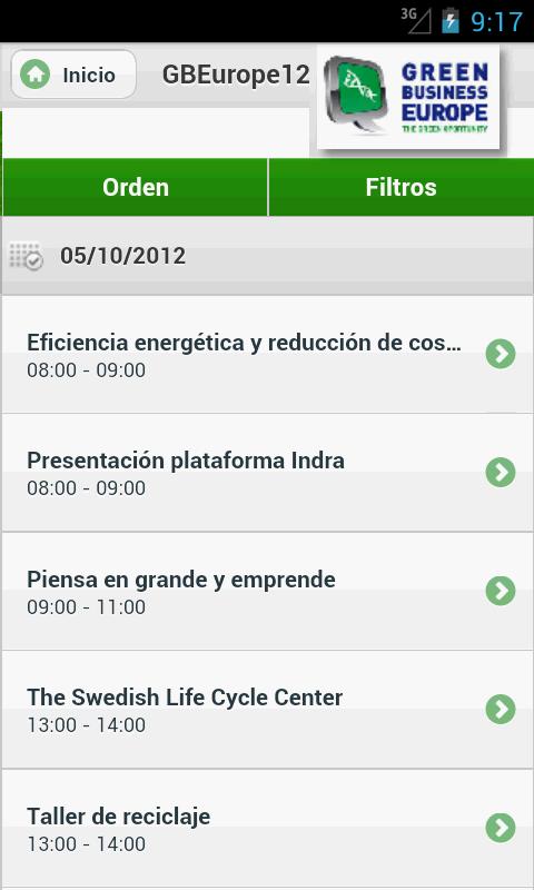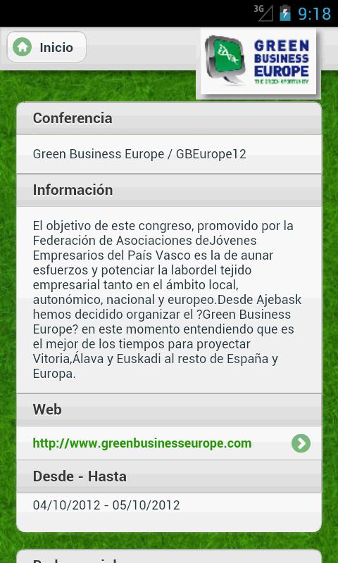 Permite ver el programa y el networking entre los asistentes.Application of Young Entrepreneurs Congress held in Vitoria 5 and 6 October 2012.