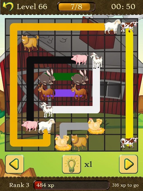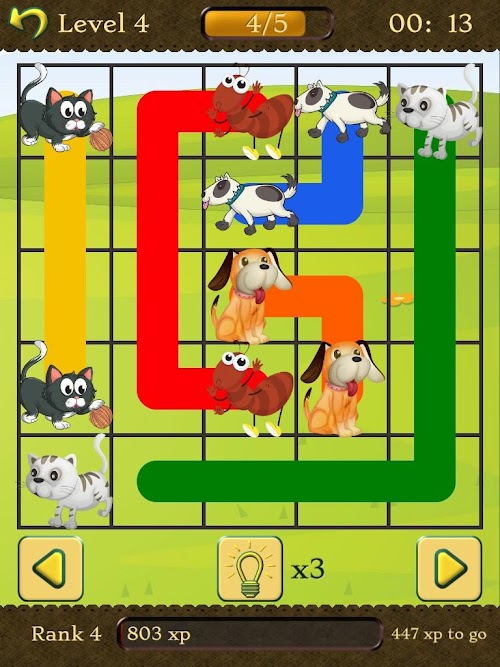 Play through hundreds of puzzles. Flow Animals is easy at first, but gets challenging as you advance.