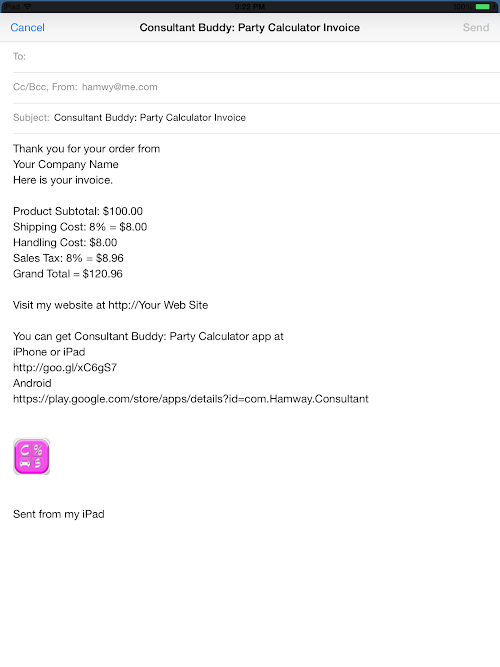 ~Email custom Invoices to your clients. with your unique company name and web address pre-formatted into the email.