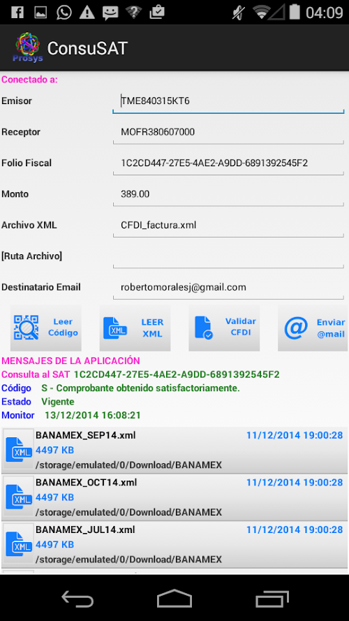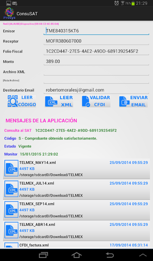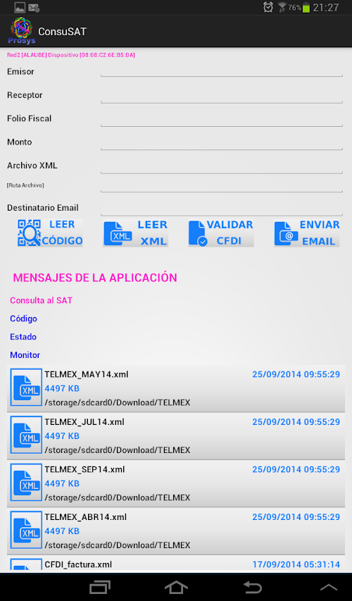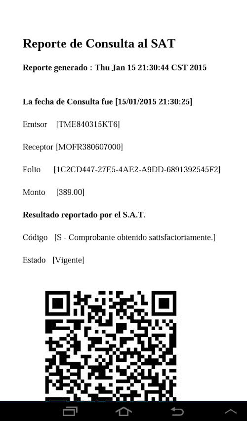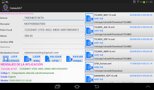 Recuerde que es OBLIGACIÓN del contribuyente verificar la VALIDEZ de un CFDI antes de presentar cualquier declaración.consuSAT is an Android based application to Phone or Tablet, to consume a Web Service, the SAT has made available to software developers and for querying the Validity of a CFDI Certificate (Certificate Fiscal Digital Internet) to the SAT .