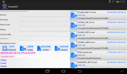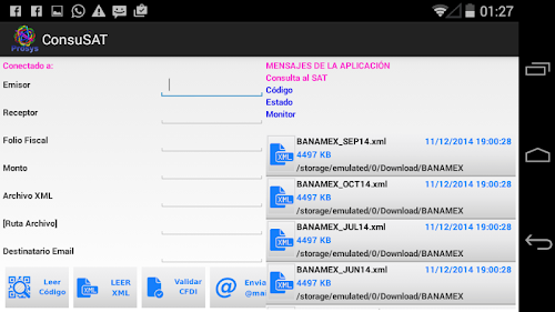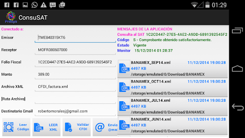 With a few clicks you can check a CFDI ALL within one screen without captchas capture and knowing that consuSAT not use the work of others. The promotional video lasts less than three minutes and let you see how easy it is consuSAT. Available is the first Android version 3.0 or higher.