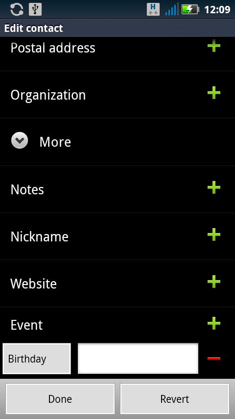 There is a big problem with events in this editor (better: with Android). The Android SDK documentation states about the database column for the date: 'The event start date as the user entered it.' Unfortunately does every manufacturer have it's own opinion about the format. Some are happy with 'yyyy-mm-dd', my phone uses unix timestamps.
