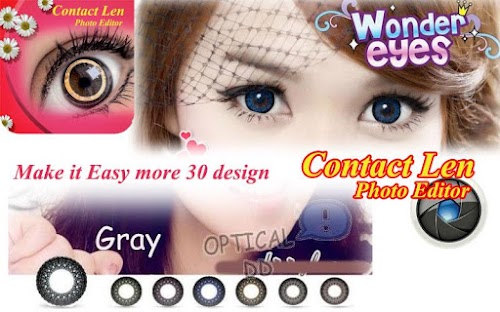 Contact lens editor photos app with create your beautiful photo with free contact lenses that are colored, Photo Editor Contact Lens. You can put the to your Contact Lens without painful. Moreover you can apply effects and filters over your photo more 20 color.