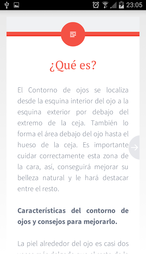 Está aplicación nos muestra toda la información del blog http://contornoojos.es. Donde tendremos acceso a la información necesaria para el cuidado diario del contorno de ojos siendo claramente una de las zonas más sensibles de la cara y por lo tanto en las que más tenemos que estar pendientes.