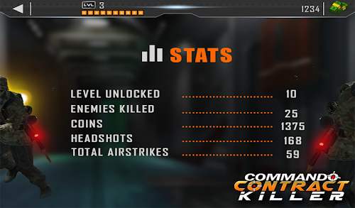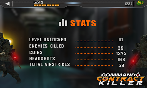 Upon reaching a successful completion of one level, the next killer contract will be unlocked, adding more enemy forces – increasing your test of shooting skills as a Contract Commando Killer!