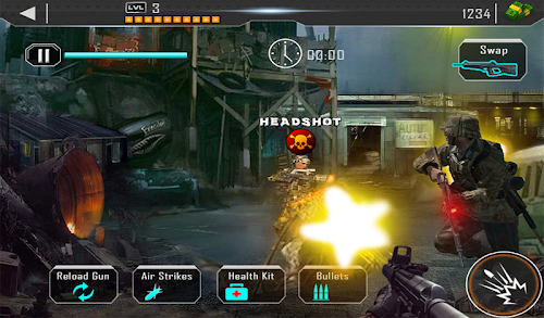 While firing gunshot at the enemies, you have to also survive their gunshots and refill your ammunition to enable more shooting. Enemy will continue to send more commando reinforcement so make sure that you continue firing gunshots as they appear.