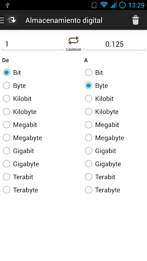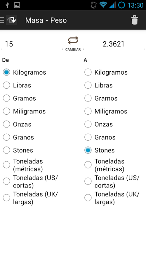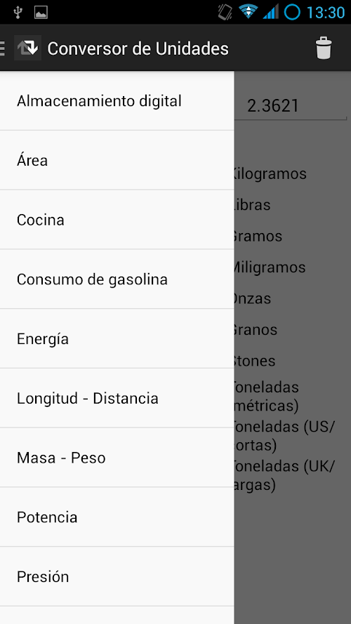 Esta aplicación le permite convertir unidades de forma sencilla: