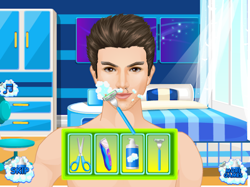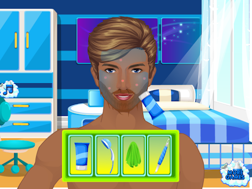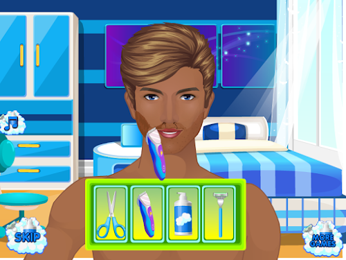 Hi, every morning you can see how your dad goes to bath and he does a ritual, among all this things is the shaving. Surely you noticed how he washes his face with a special soap and then follow in applying the shaving cream and begins to shave. All the guys are waiting the day when they will be able to do this thing so through this game for boys you'll learn how to shave for when the time comes. You will have to shave two men, they need professional help and especially need to know what salon to choose. Today your salon is their choice and you will have to help them with everything you can. This game for kids is one that will prove to everyone that you own abilities.