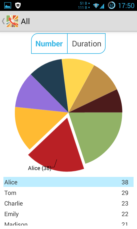 Wiht the calls graph it's easier to identify the numbers that you call more often and the total duration of calls.