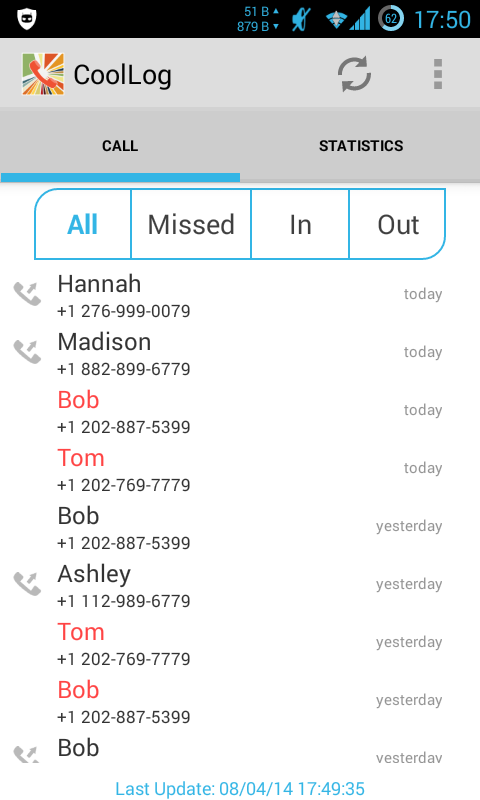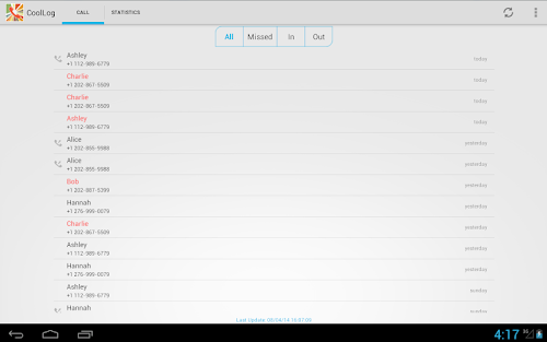 The full call history details