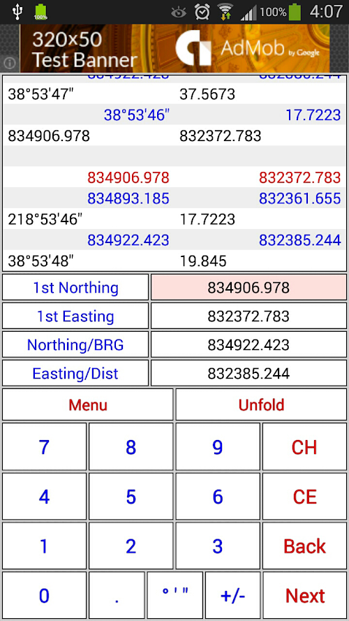 自動識別輸入為2nd座標或者是方位角&距離。輸入方位角時最少要輸入一個角度符號。