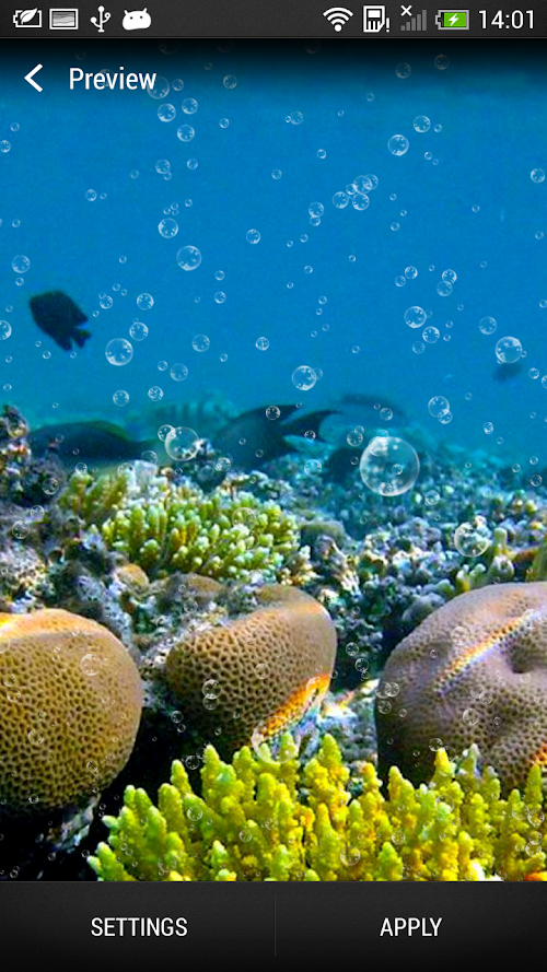 “Coral Reef Live Wallpaper” allows you to see the wonderful koi fish swim in the greatest fish tank in the world – the vast and mysterious ocean! Meet all the gorgeous sea animals, see a gorgeous clown fish, starfish or fragile seahorses,explore the mysterious ocean floor and enjoy the marvelous sight. The magical fish kingdom this live wallpaper offers will enchant you. Dive down under and explore the outstanding marine life – one of the best water world HD wallpapers will not leave you unimpressed. This “free download” gives you a chance to see the prettiest collection of ocean pictures. This ocean wallpaper offers ten gorgeous “Coral Reef Backgrounds” depicting colorful coral reefs, all for free! You will never come across such a lovely high definition app for Android™ under water – discover the school of divine tropical fish on your mobile phone or tablet screen. Do you want to visit an extraordinary aquarium at the bottom of the ocean? One of the most appealing free live wallpapers will take you to the most amazing bubble town! Sea life has never seemed so realistic! Do not think that there always must be plenty more fish in the sea! Do not miss this fabulous opportunity to beautify your Samsung Galaxy mobile phone with an outstanding fish wallpaper for FREE! All cool backgrounds depicting coral reefs and sea shells are designed so as to appeal both to boys and girls. Just download this superb water wallpaper prettified by adorable sea creatures and enjoy the bubble show with the amazing parallax effect. Go snorkeling with the colorful fish, make a splash and be on the crest of the wave with this stunning live application. Can you believe that this cute nature wallpaper can be yours in matter of seconds?! Let these lovely and colorful backgrounds “Coral Reef LWP” rejuvenate you and make you feel relaxed. Each and every soothing “Coral Reef Background” will truly purify your spirit and cleanse your mind! Do you want to experience serenity? “Coral Reef Live Wallpaper” to the rescue! Gaze at gorgeous corals and immerse yourself in crystal clear blue water this free app provides! The deep sea beautified by “coral reef”, sea sponge and your very own fish aquarium await!