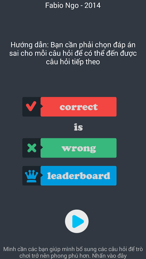 Bạn phải trả lời các câu hỏi trong thời gian ngắn. Tuy nhiên, điều quan trọng là bạn phải chọn câu trả lời SAI thì mới có thể đến với câu hỏi tiếp theo. Nào cùng thử tài