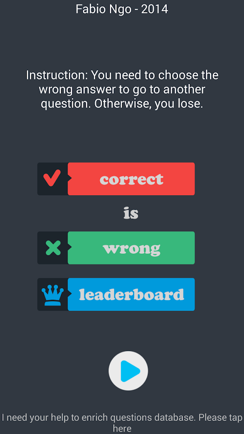 If you are looking to download other versions of Correct Is Wrong Android Game, We have 1 version in our database. Please select one of them below to download.