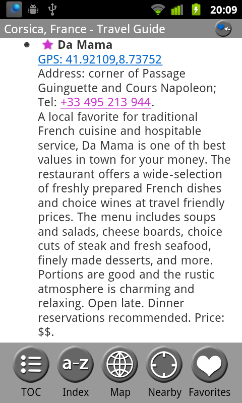 ✔ The top restaurants have been individually selected by MobileReference editors. These restaurants are marked by a star in the EAT chapter and are plotted on the GPS map.
