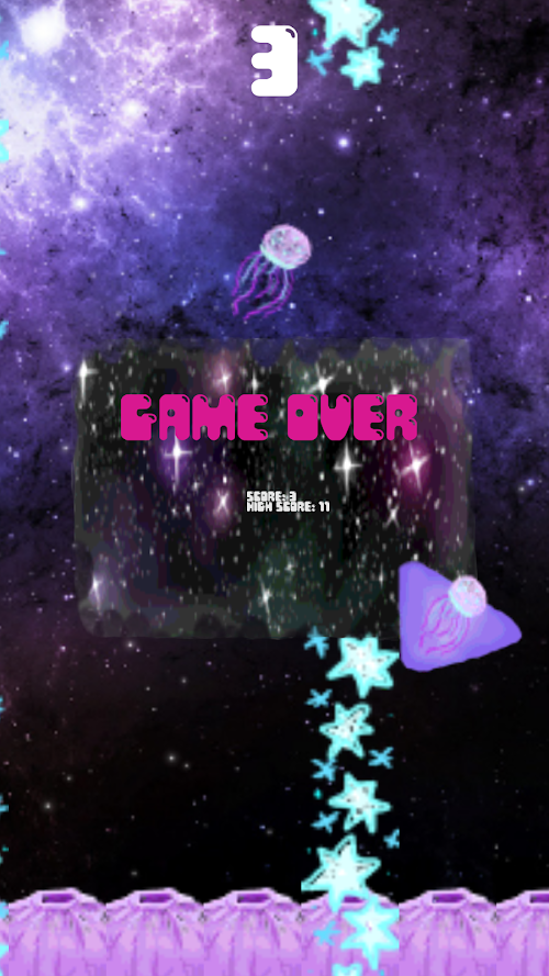 You are a Jellyfish, lost in the abyss of space. You must float through the sereneness of the Cosmos, avoiding the stars in your path.