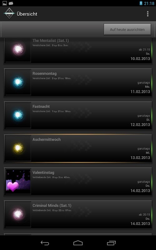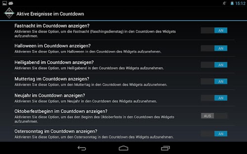 With the Event Widget keeping your important events, dates and festivals always in view. The app consists of a comprehensive summary page and a widget that you can place on your Android desktop. So you're always up to date as it takes a long time (days, hours and minutes) until the next event.