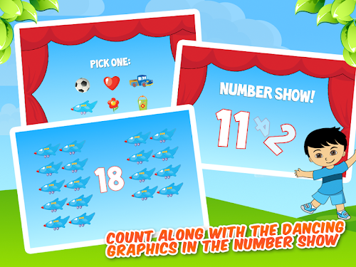 In Number Show, dancing graphics and music introduce numbers 1 though 30 and encourages toddlers to count aloud, while Counting Game features delightful images and encourages toddlers to physically tap and count objects. Tracing Game gives toddlers their first exposure to number writing by guided tracing with their fingers. All these games lead up to a reward screen, where users are able to play with interactive virtual pets called Treasure Crits.