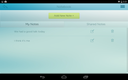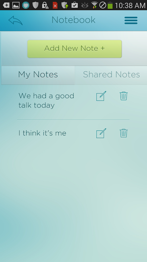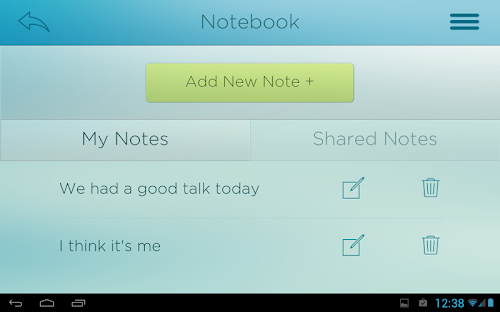 • Share-able notes: Lets you share your notes with someone else, this can be very helpful in explaining your thoughts and feelings.
