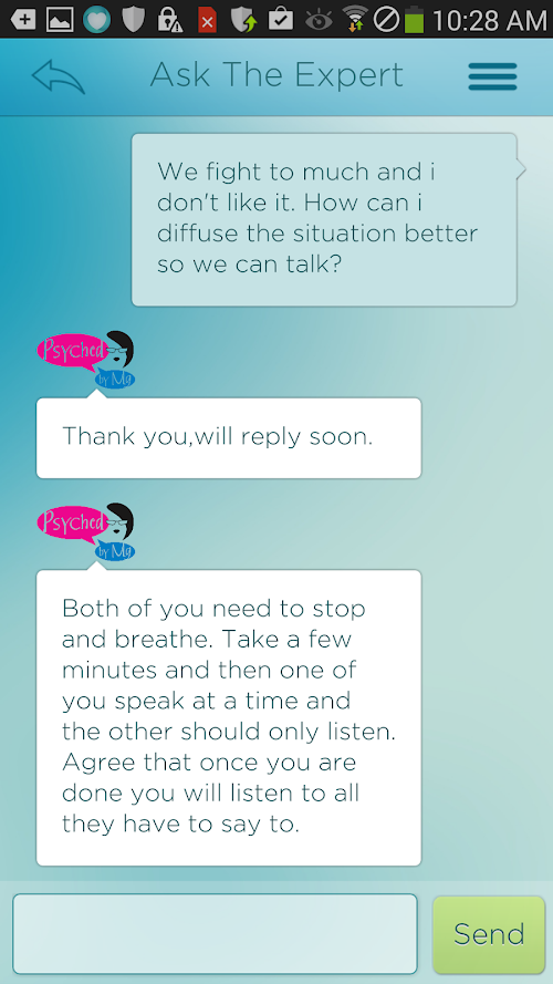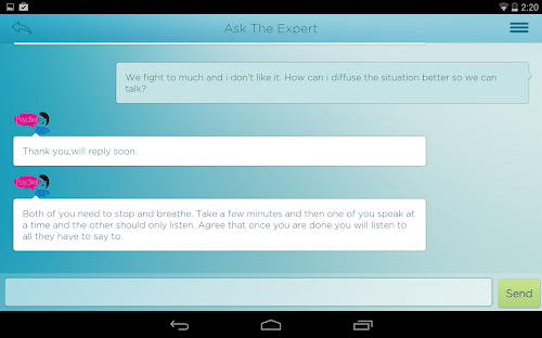 • Couple Counseling Quick Swipe: With a swipe your finger you can go straight to the couple’s ask an expert page for relationship help or to add a note to your notebook.