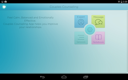Couples Counseling should be used for information and entertainment purposes only. Couple Counseling makes no warrant in express or implied about the success of your relationship. This application is meant to help facilitate and help relationships based upon therapeutic practices and relationship information. In a serious situational you should seek the help of a local professional.