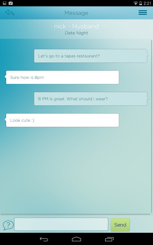 • Predefined communication messages: Sometimes it can be hard to know what to say. With predefined messages we can help you show your significant other that you care and you’re listening. It is a great way to practice communication between each other. Then you can implement the messages with the couple chatting feature.