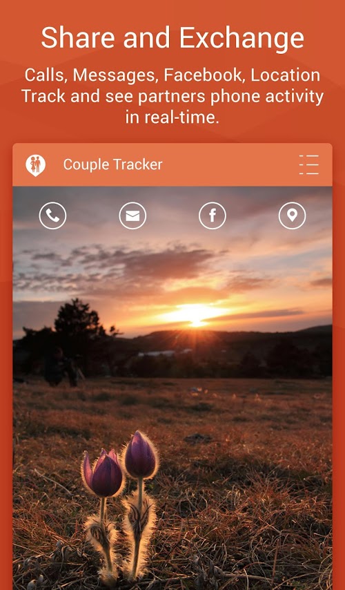 • Couple Tracker - Phone monitor is implementing unordinary “trust system” giving to your girlfriend, boyfriend, wife, husband simple offer: “You will see 50 characters of my every text message (SMS), all my phone calls and overview of my Facebook activity, under the condition that I will see same history/records of yours”. Fairly exchange is basic and only one limitation.