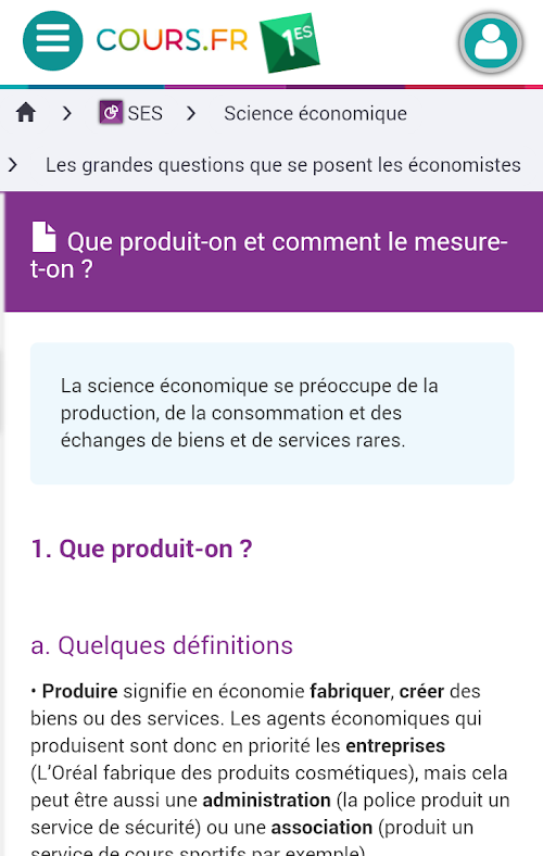 Besoin de réviser une leçon du programme avant un contrôle ou d’éclaircir une notion apprise en classe ? Retrouve plus de 800 fiches de cours de Première ES dans toutes les matières ! Développées avec des professeurs de l’Éducation nationale, les fiches reprennent point par point toutes les notions abordées pendant l’année.