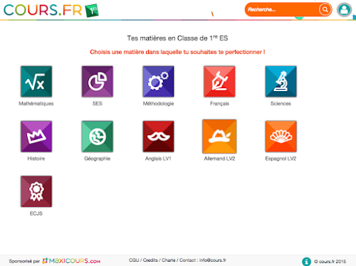 Classées par matières/thématiques/notions, le menu de gauche te permettra d’accéder rapidement et n’importe où à la leçon de ton choix.