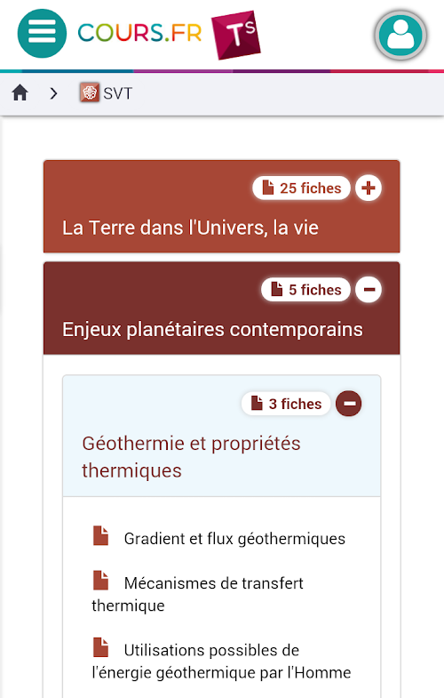 Classées par matières/thématiques/notions, le menu de gauche te permettra d’accéder rapidement et n’importe où à la leçon de ton choix.