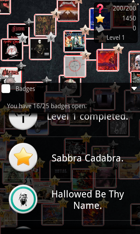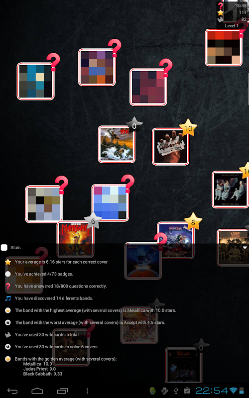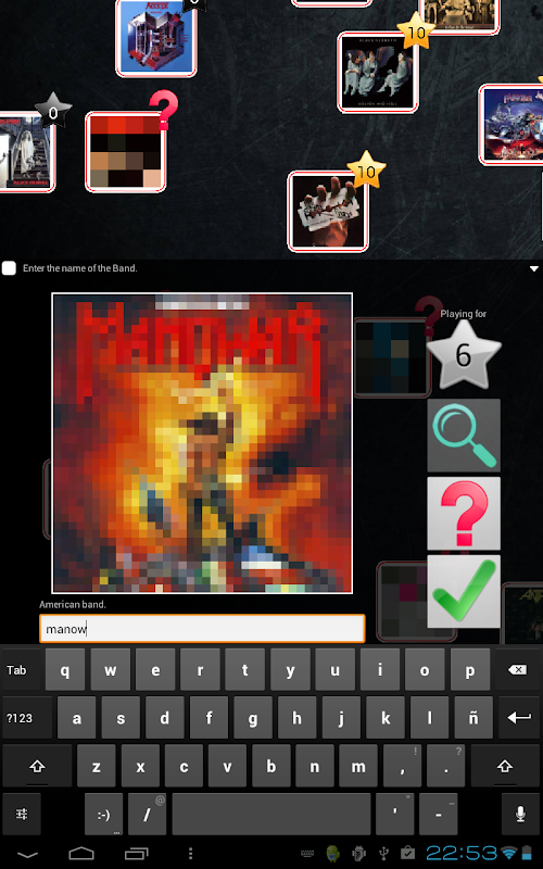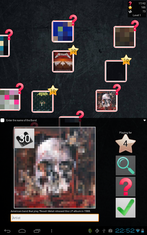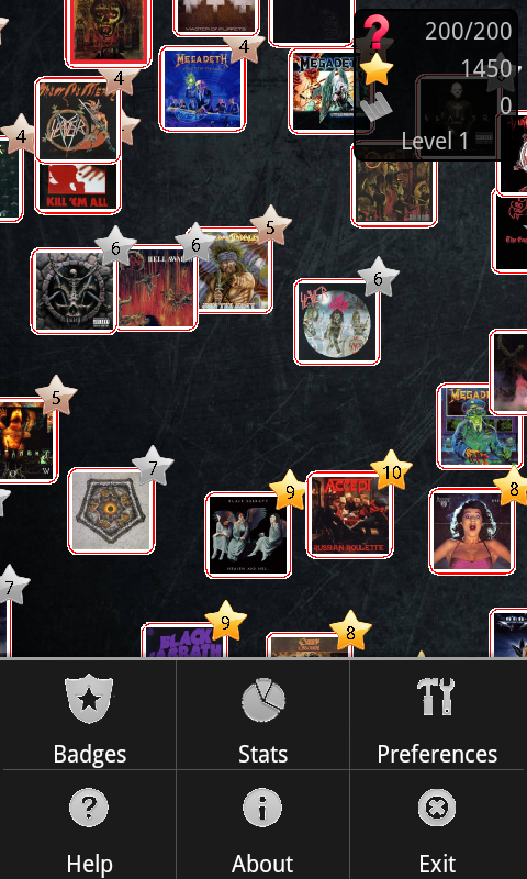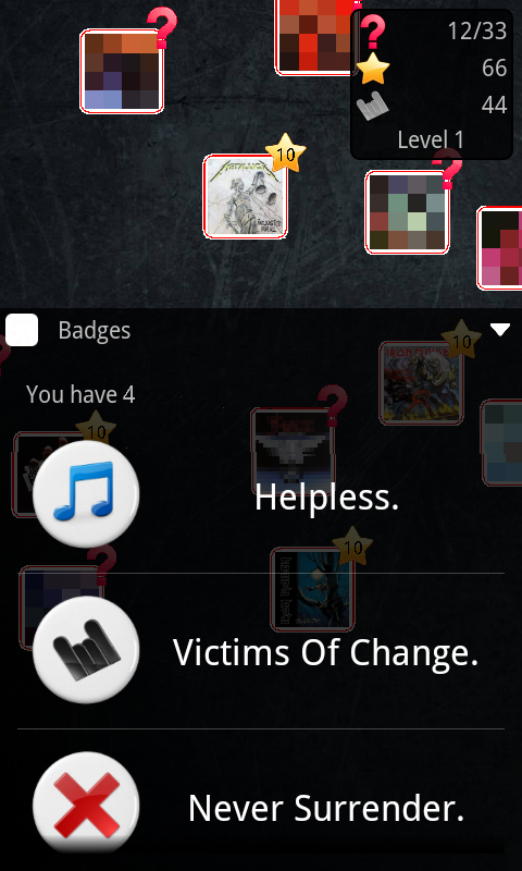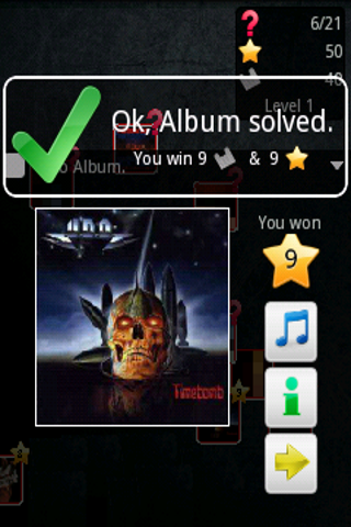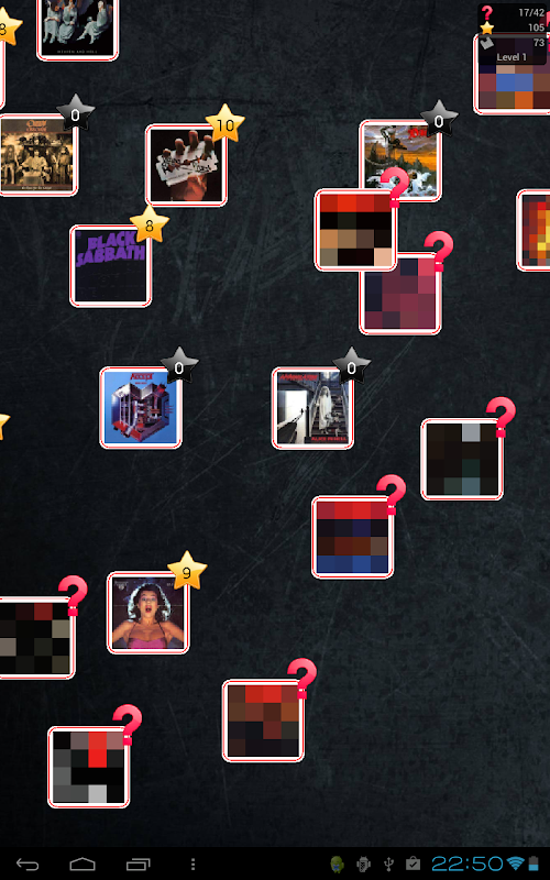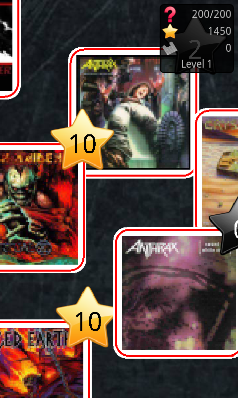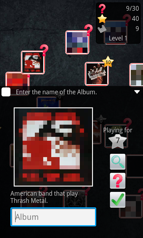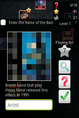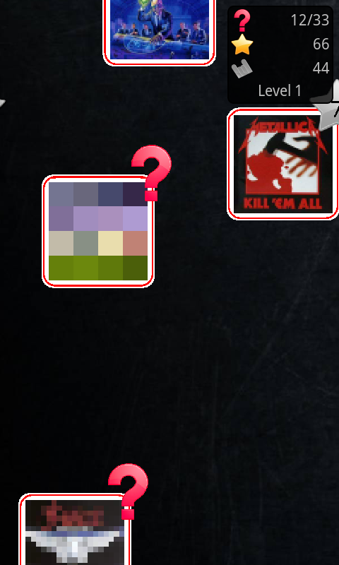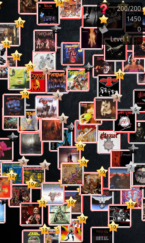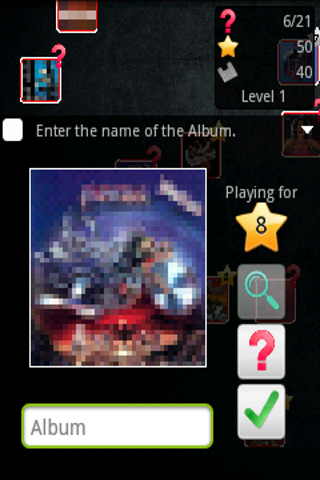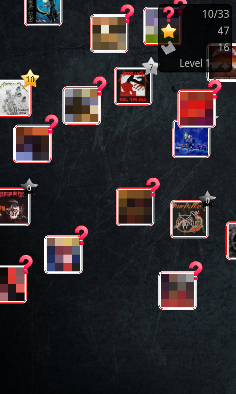 Discover the metal album, which is behind the pixelated cover, when guess right a question, more covers fanned out to solve.