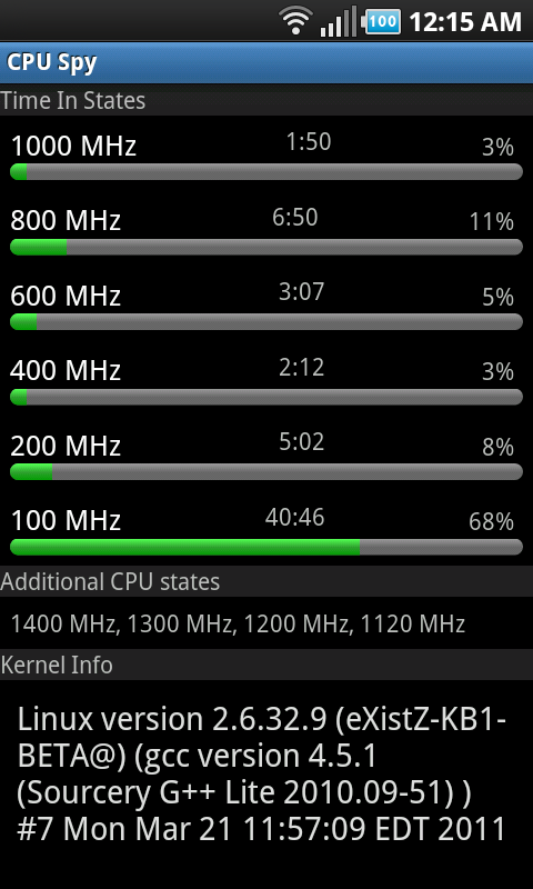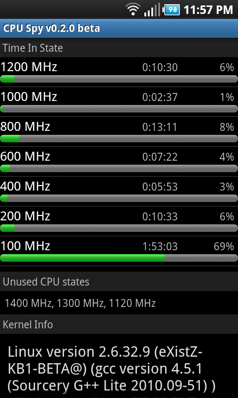 Simple Android app for viewing the time the CPU spends in each frequency state,