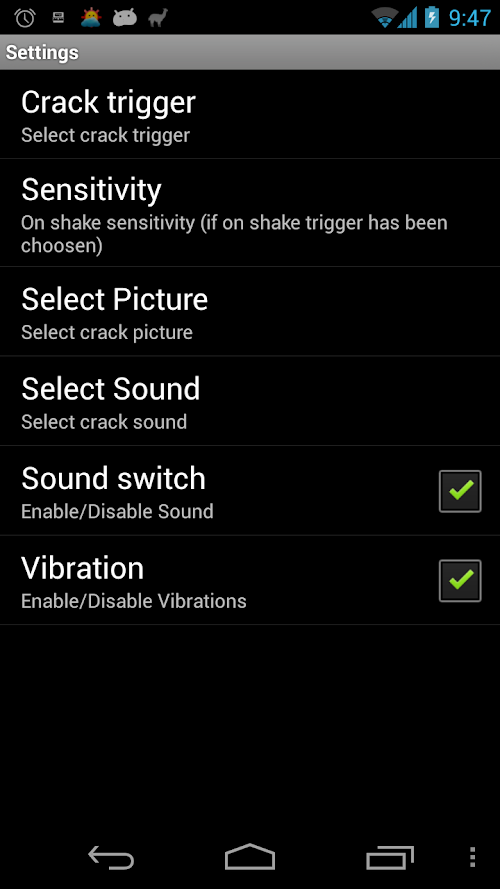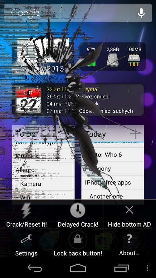 Most realistic screen crack effect application on Android Market! Now you can use phone as usual before delayed crack pop up!